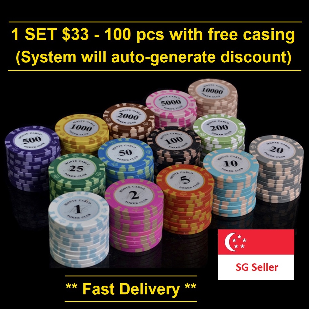 Authentic Monte Carlo Poker Chips 14g Customizable Clay Poker Chip Set Mahjong Chips Set 25 Chips Bundle Shopee Singapore